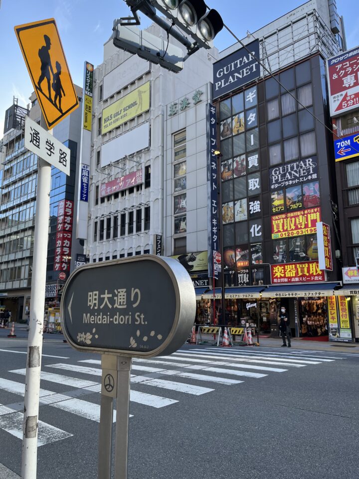楽器店が連なる明大通りの緩やかな坂道を下っていきます。