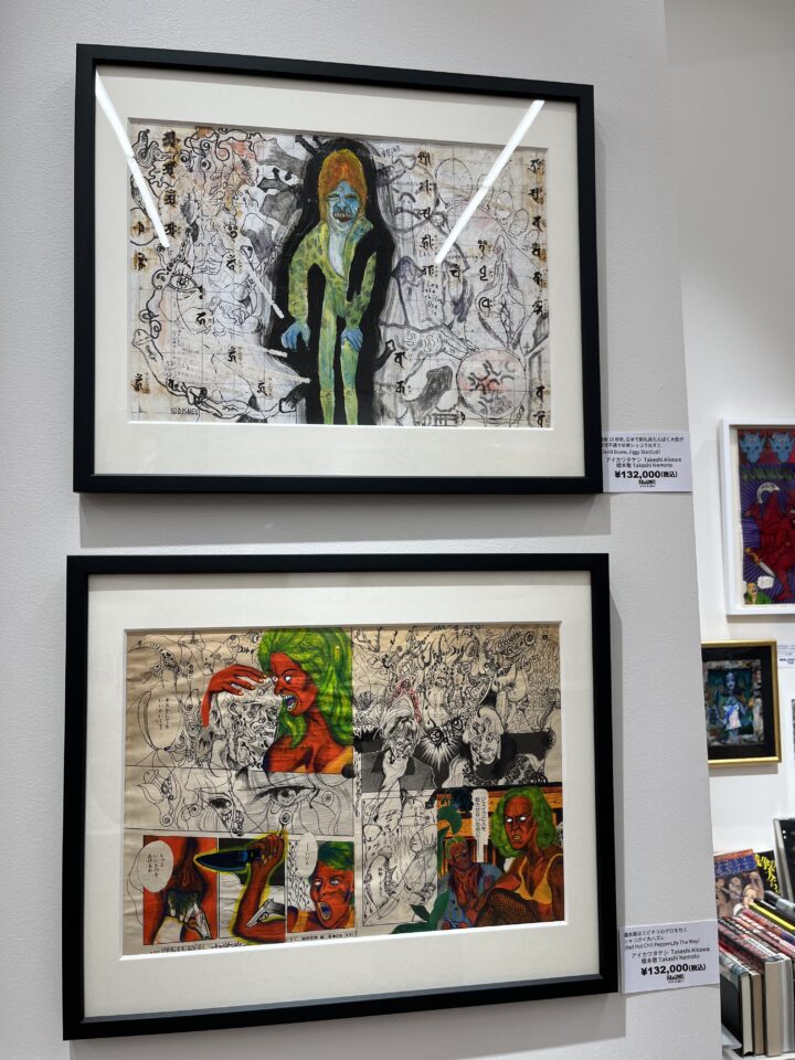 当店からは、90年代のサブカルチャーに焦点をあてた古書やアート作品を中心に、根本敬さんとアイカワタケシさんによる共作、ドローイングなど、アート性の高い貴重な一点ものをご紹介。