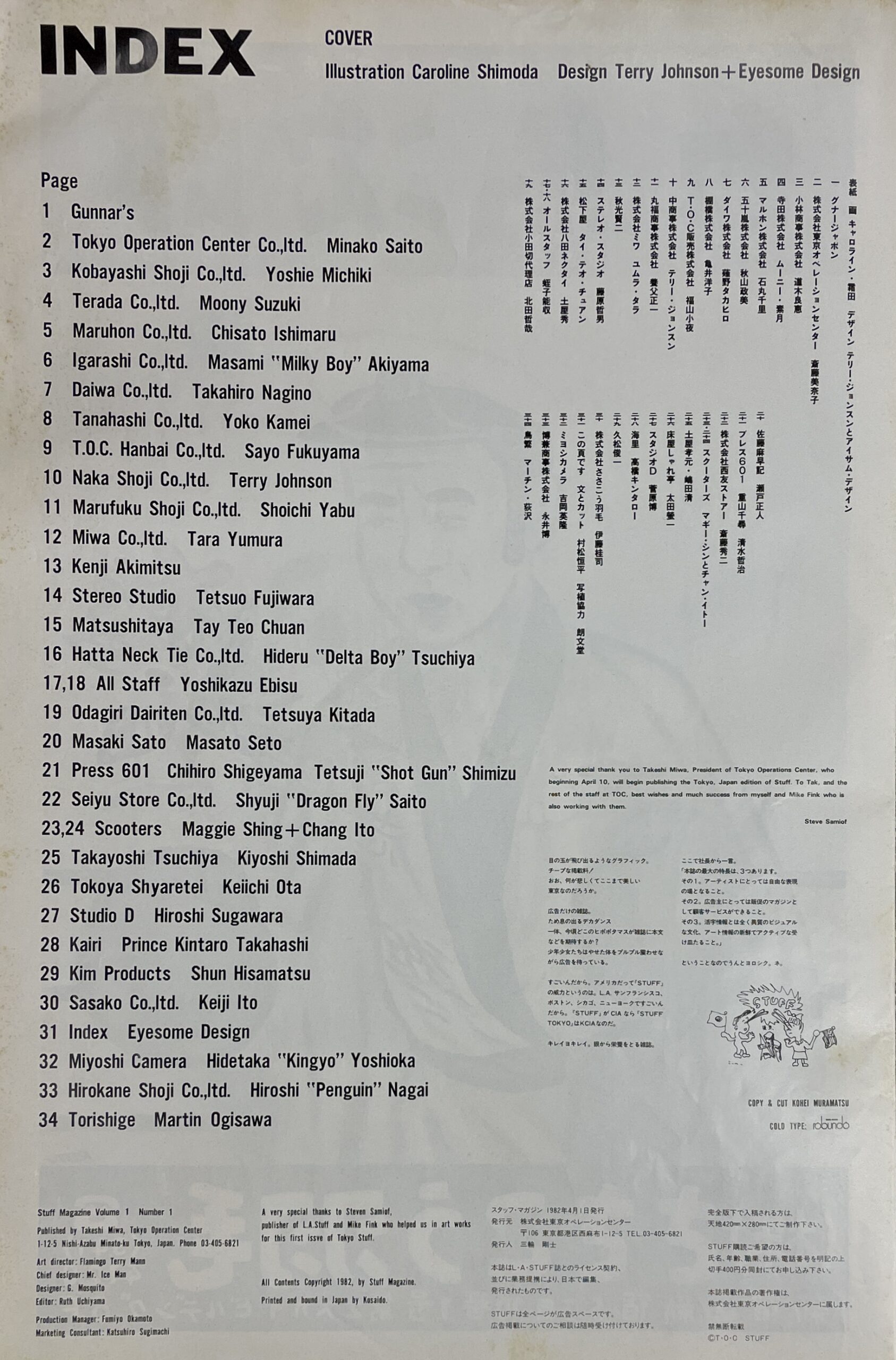 スタッフ・マガジン 創刊号 Stuff Magazin Volume1 Number1 TOKYO STUFF