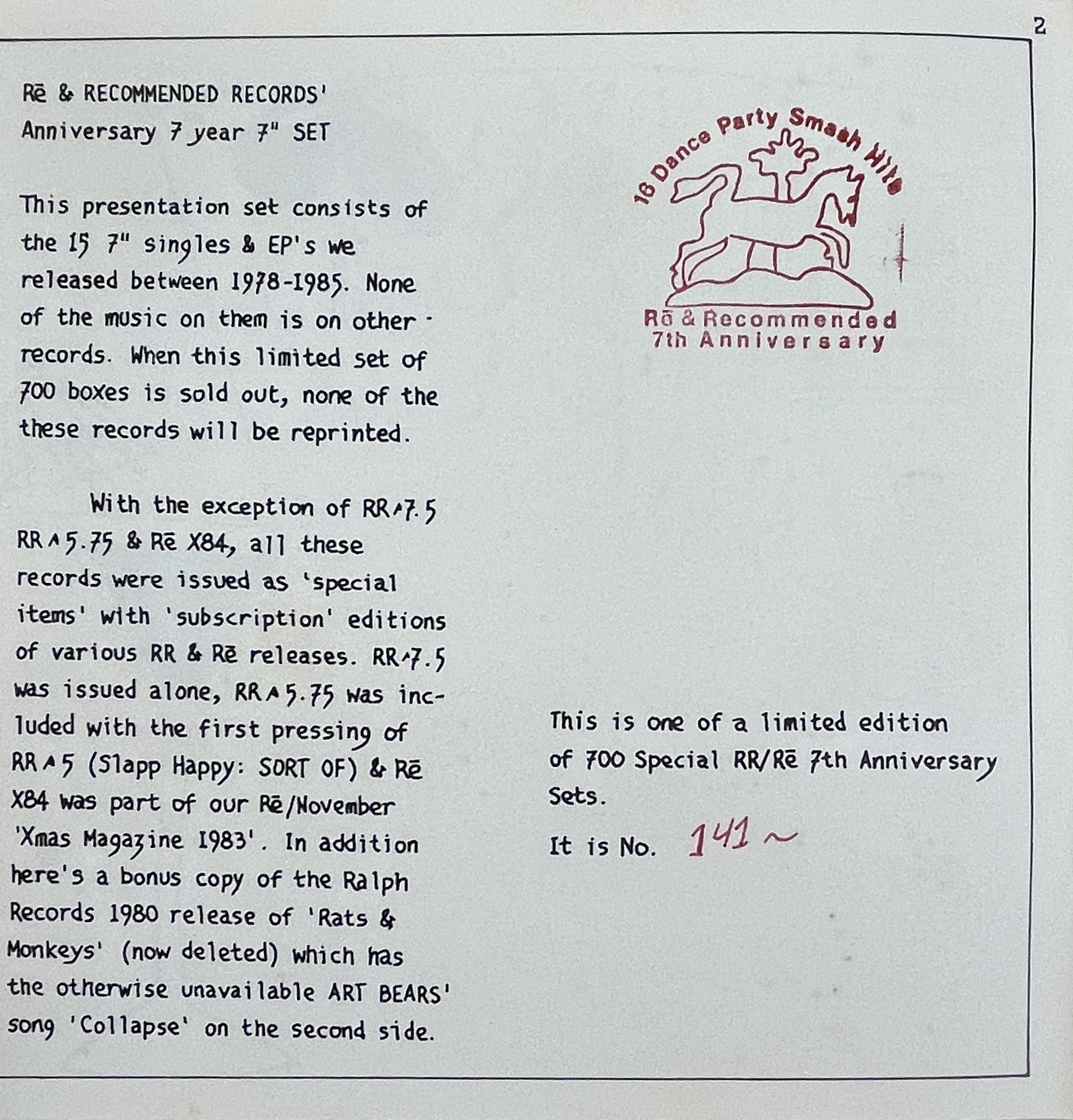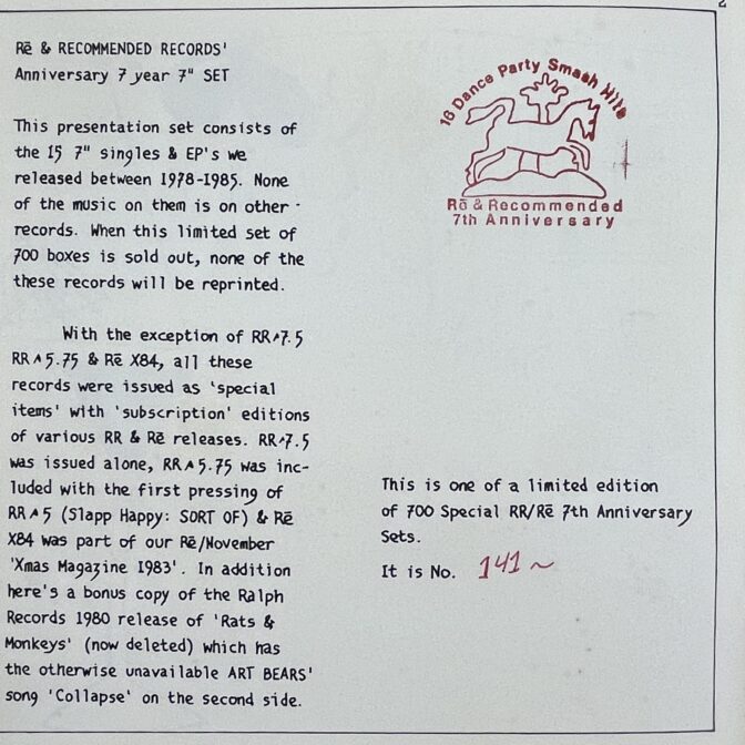 Disc 8: V/A / The Recommended Sampler EP (Peter Blegvad, Ici La Bas , Faust, R. Stevie Moore )