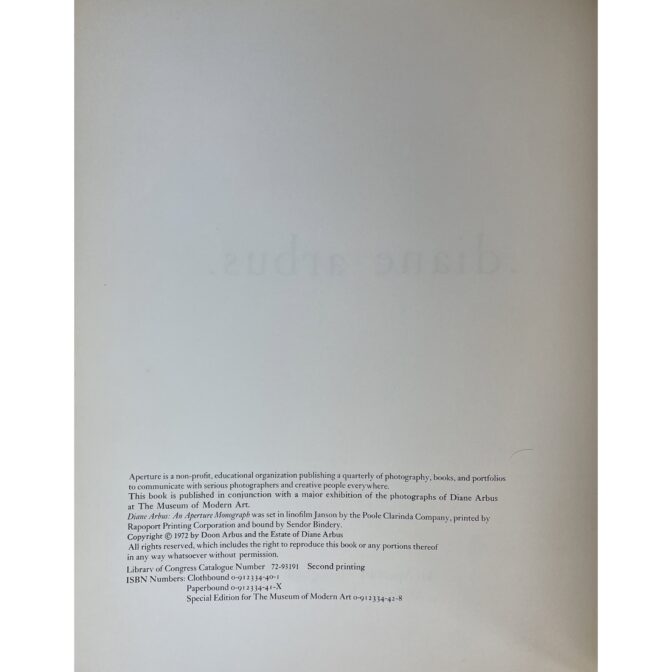Diane Arbus An Aperture Monograph first edition, second printing